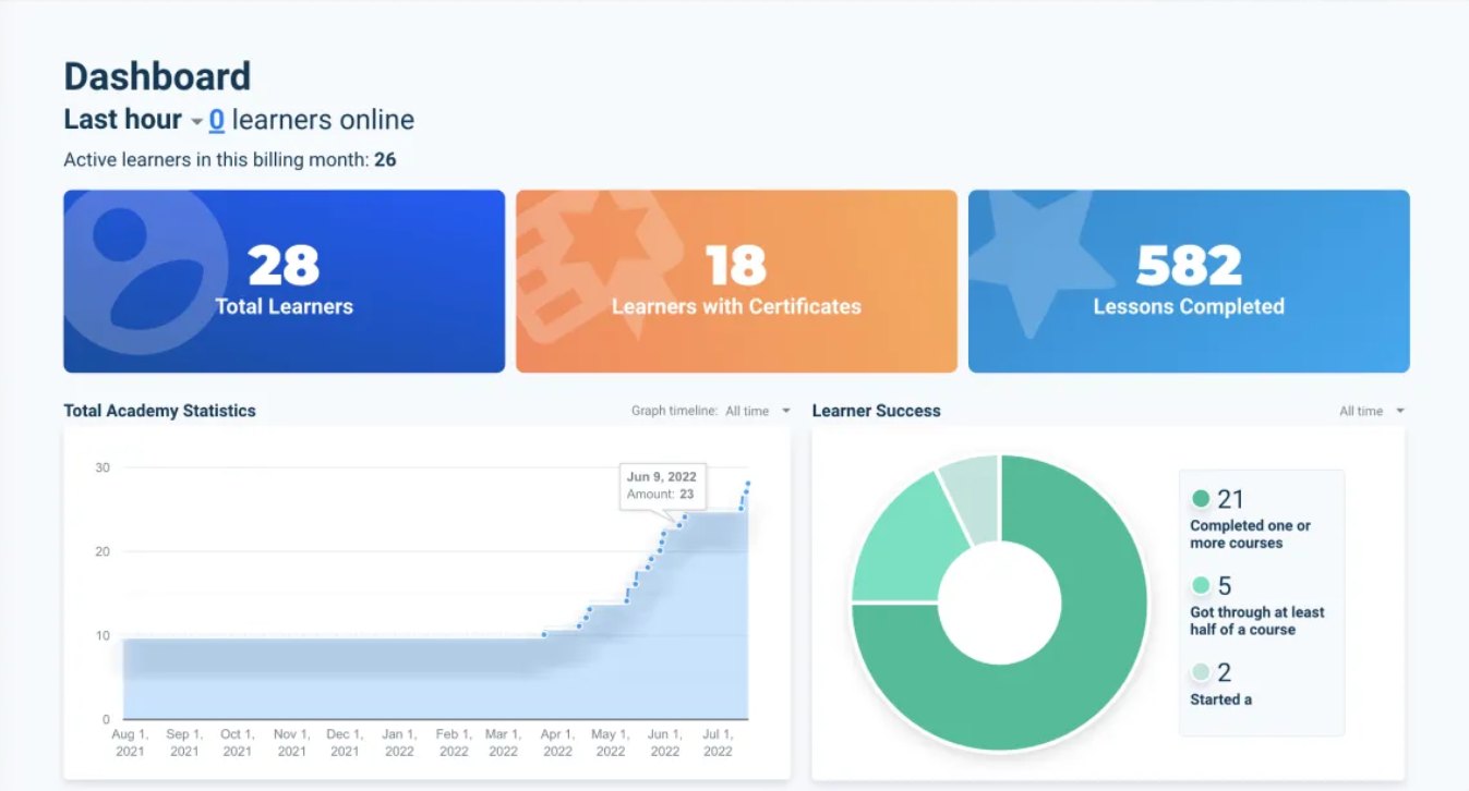 User-friendly interface for admins, instructors, and learners.
